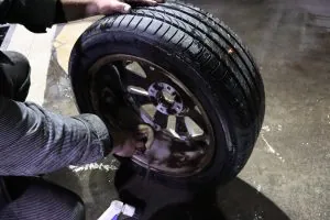 サクッと交換し専用タイヤバランサーにてしっかり測定・調整。取付前には裏面まで洗浄し完成。